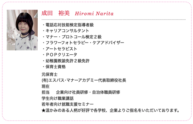★温かみのある人柄が好評で各学校、企業よりご指名をいただいております。
